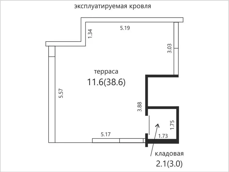Жилая площадь- 44м2 , площадь по СНБ-57м2.