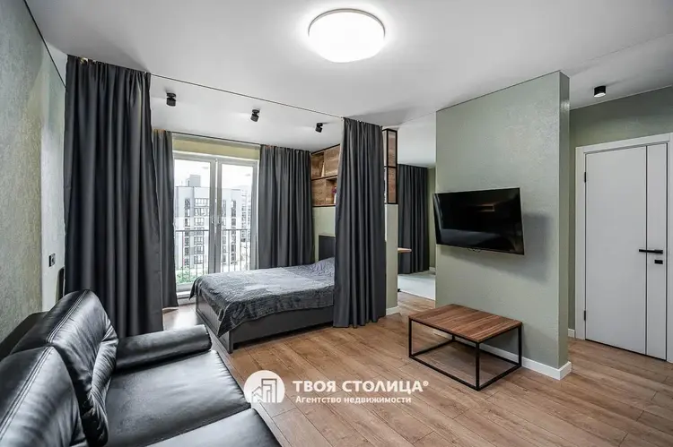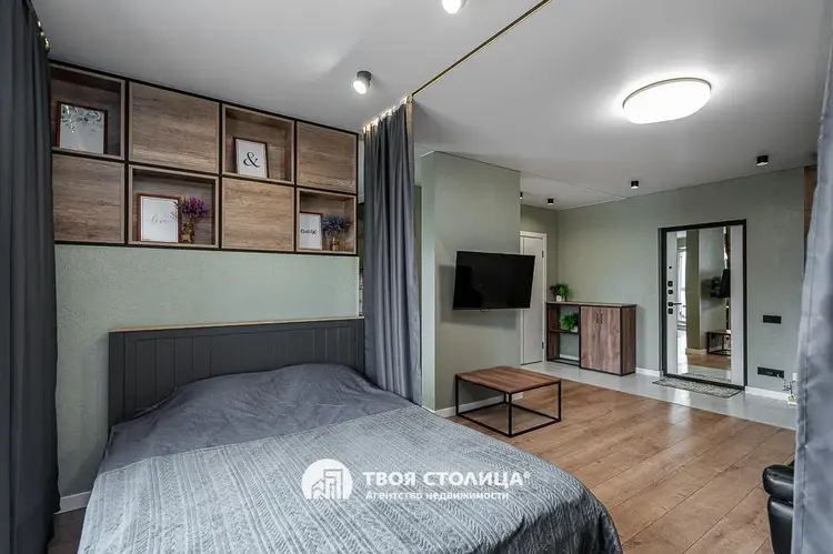 Изумительная квартира-студия в Новой Боровой возле Центрального парка с дизайнерским ремонтом в стиле японского минимализма. Продуманный до мелочей интерьер с качественной чистовой отделкой, стильным кухонным гарнитуром, бытовой техникой и эффектным подиумом. Все абсолютно новое – отличный вариант для жизни и выгодная инвестиция. Хорошая цена! Возможен торг. Чистая продажа.