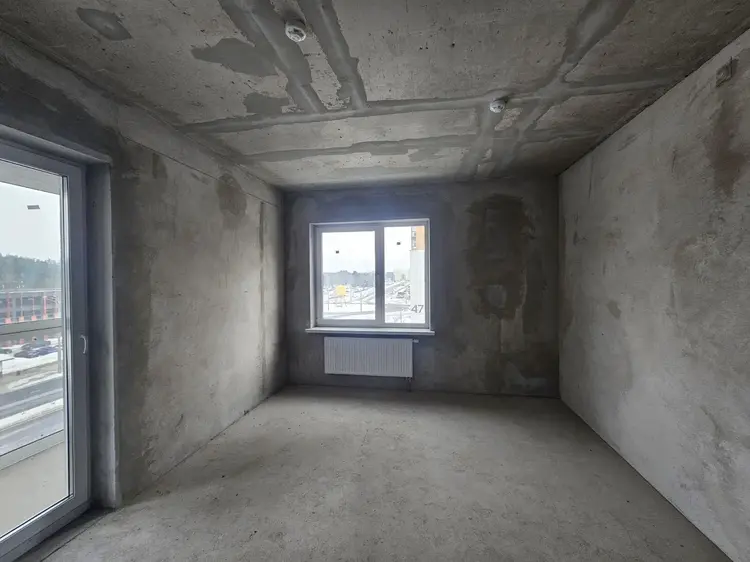 - Состояние: без отделки (бетон), дом сдан в 2025 году