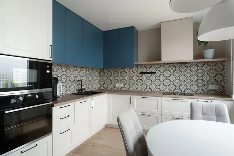 - выровнены стены и оклеены обоями с эффектом венецианской штукатурки;