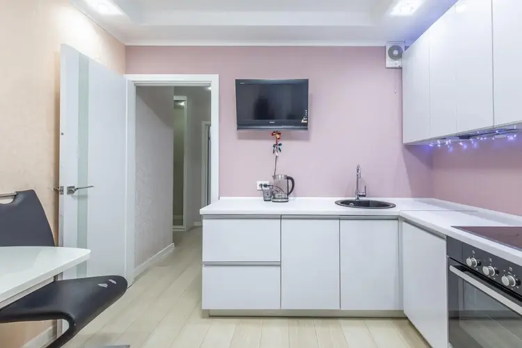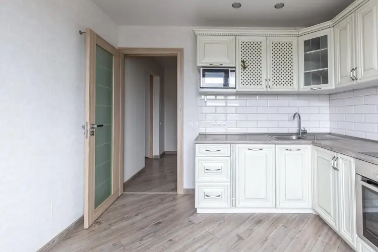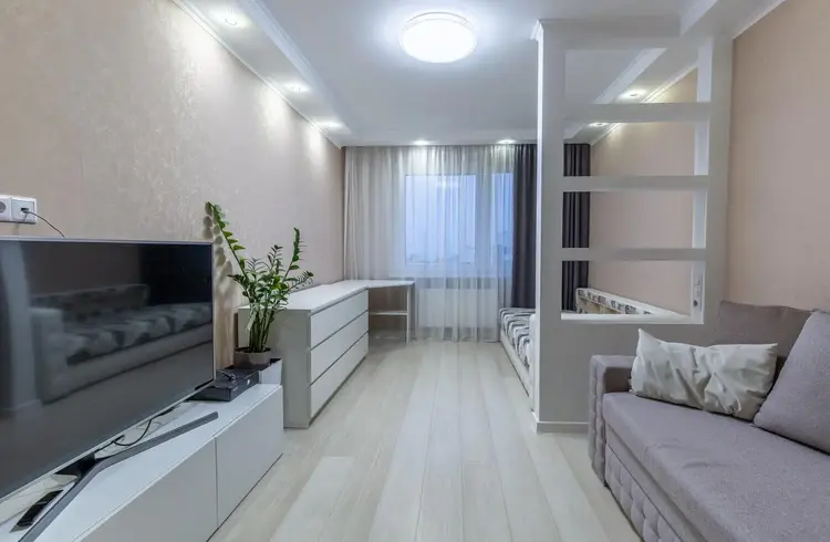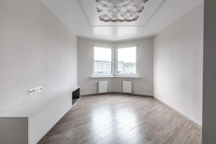 Современный ремонт в классических светлых тонах, без пестрых деталей.