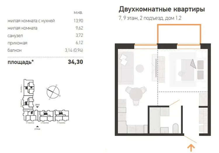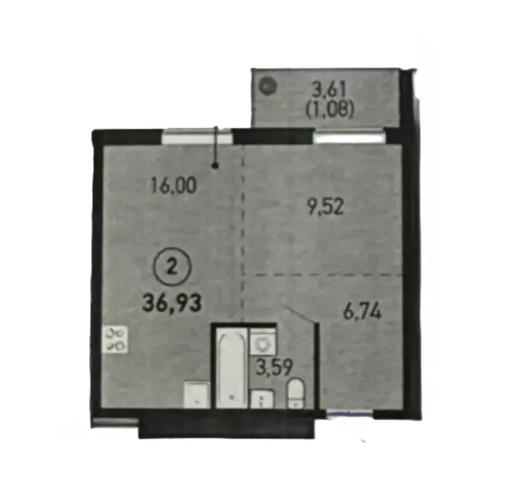 Площадь: 36,93 м2 (по СНБ) с удобной планировкой.