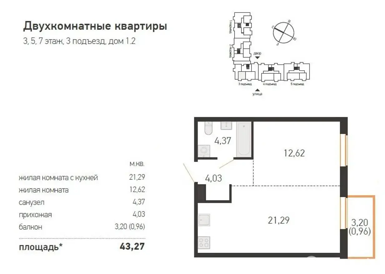 Квартира расположена в малоэтажной секции, всего 7 этажей.