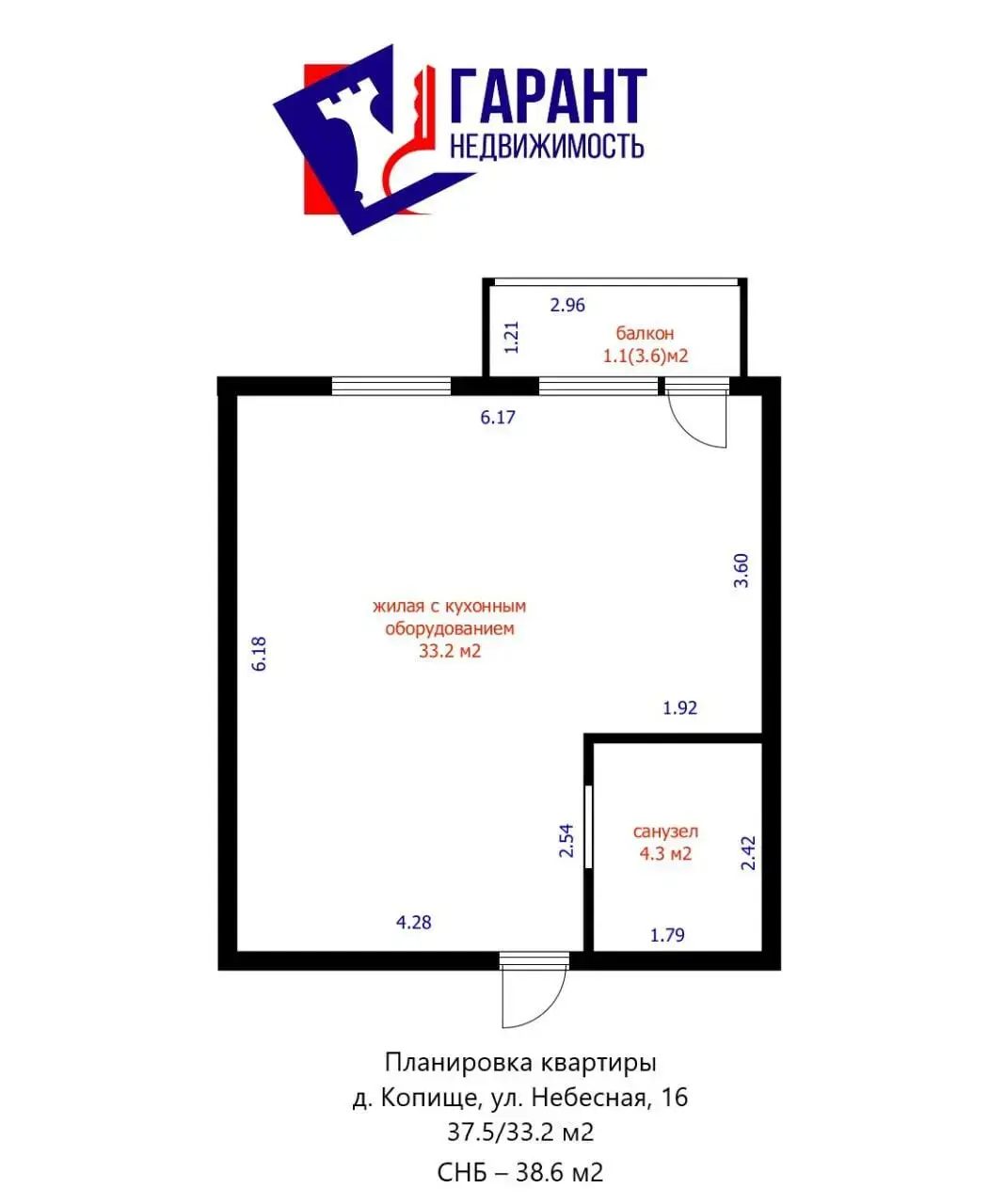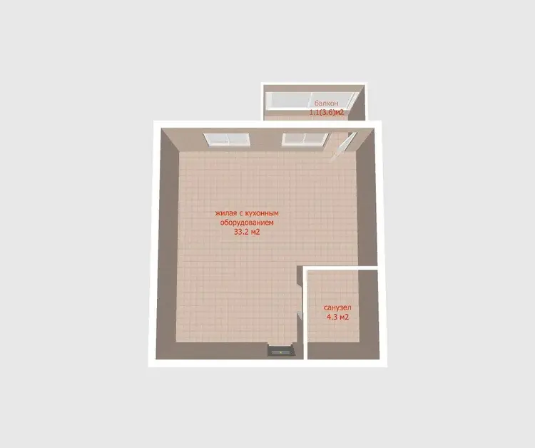 Современная 2-комнатная студия, площадь по СНБ – 38,6 м2, общая - 37,5 м2, жилая – 33,2 м2. Выход на балкон, панорамный свет, красивый вид — чистое удовольствие каждый день.