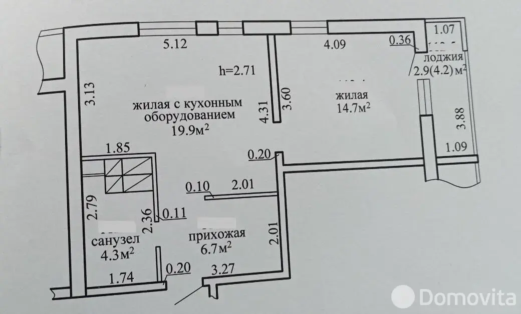 Площадь квартиры по СНБ-48,5 м2/ общая площадь-45,6 м2