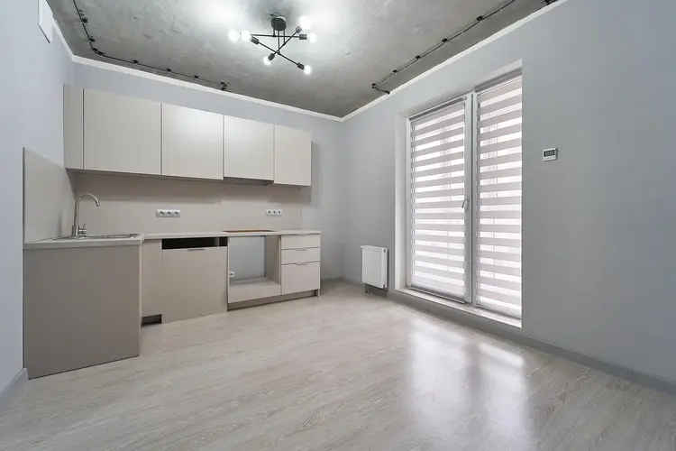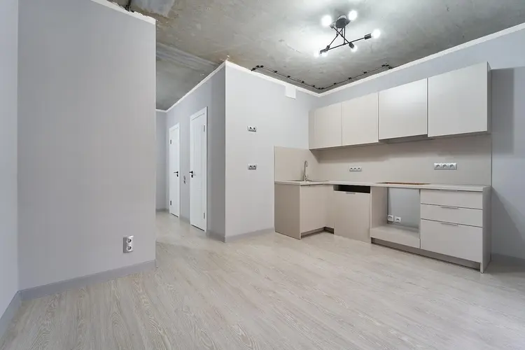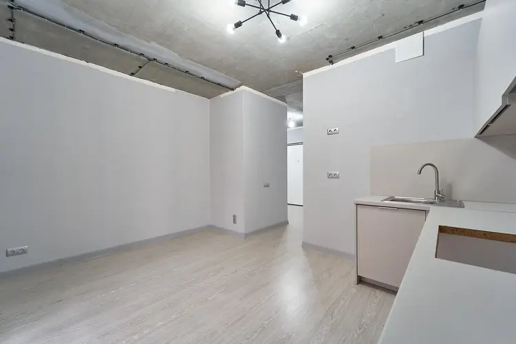 Просторная кухня-гостиная с выходом на лоджию и отдельная спальня с местом для гардеробной. Раздельный санузел.