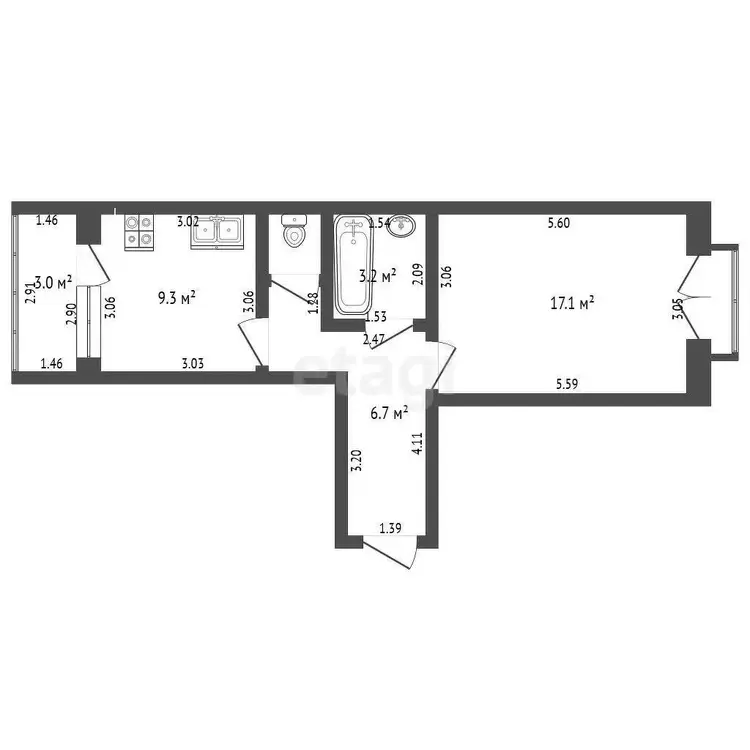 9.6 м2