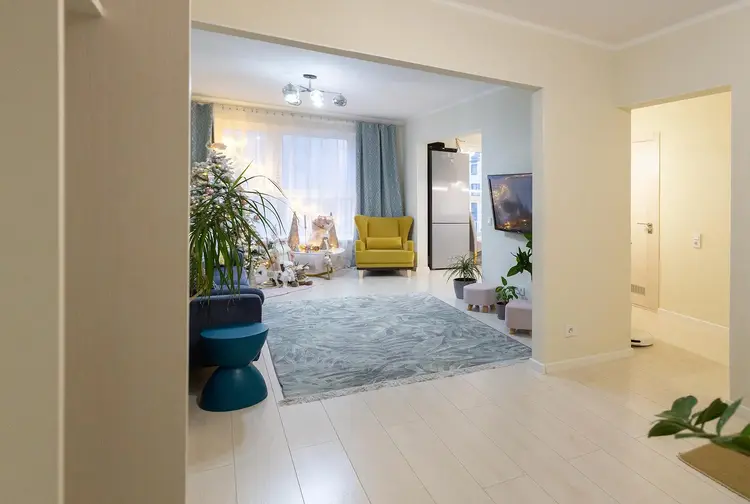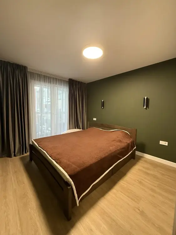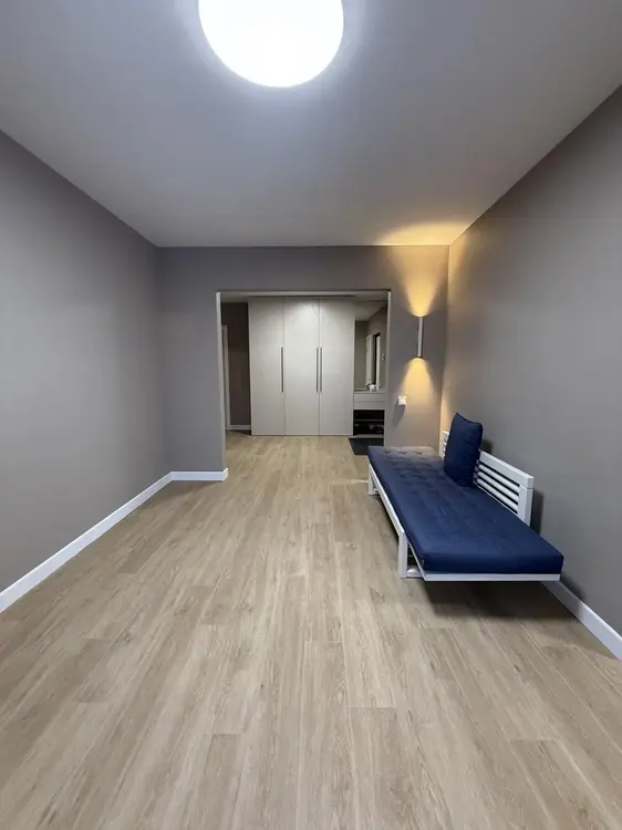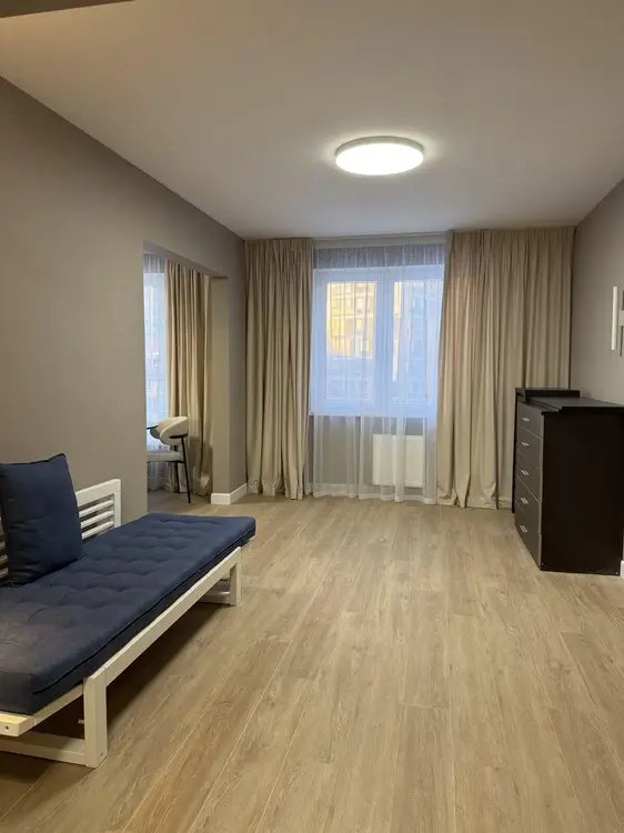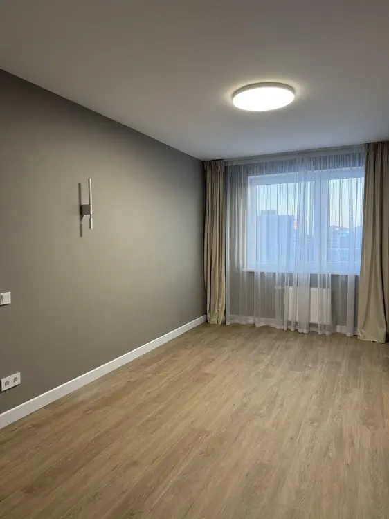 Сделан качественный ремонт, напольное покрытие-ламинат, стены оклеены обоями, потолок выровнен и окрашен. Большие, панорамные окна.