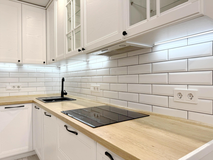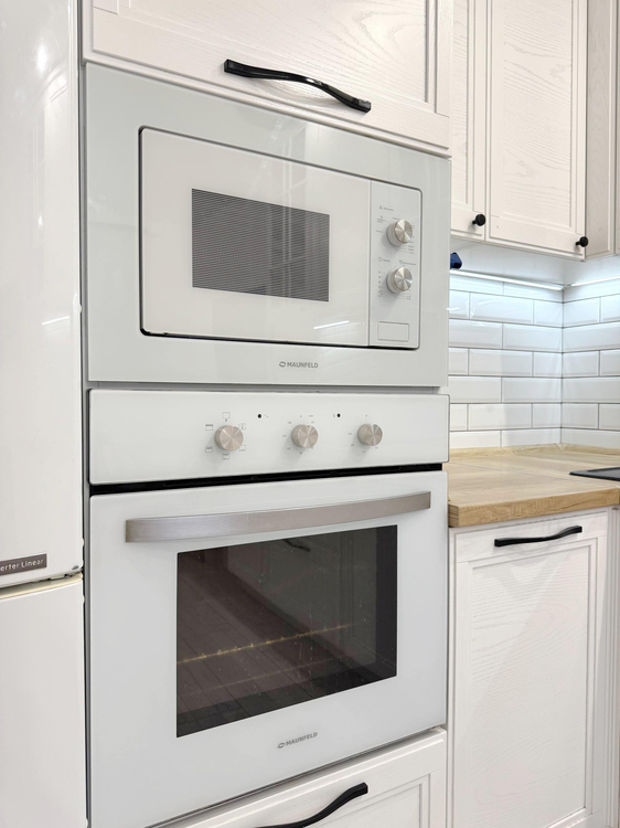 · Кухонная техника: Вся необходимая встроенная техника премиум-класса: индукционная варочная панель Bosch, духовой шкаф и микроволновая печь Maunfield, вытяжка, посудомоечная машина Hotpoint Ariston.