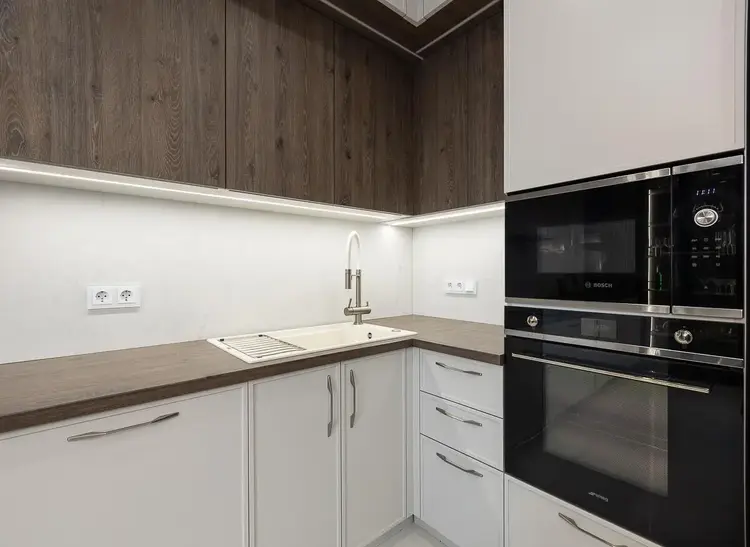 Современная встроенная кухня, оборудованная: