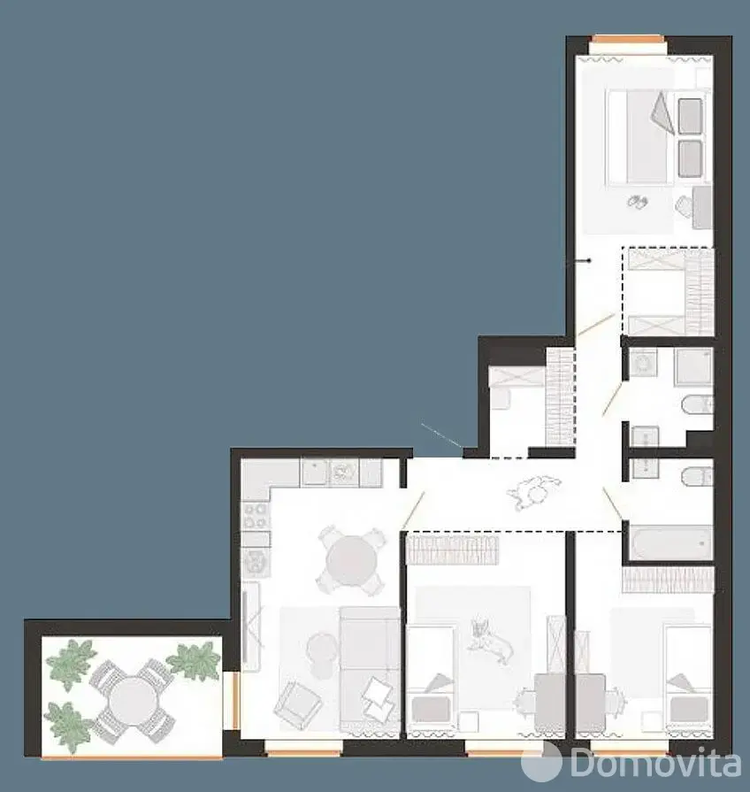 Отличная планировка для большой и дружной семьи-три отдельные спальни, просторная кухня-гостиная с выходом на балкон/террасу, два совмещённых санузла и гардеробная комната.