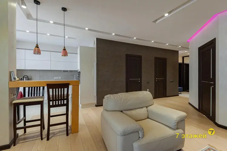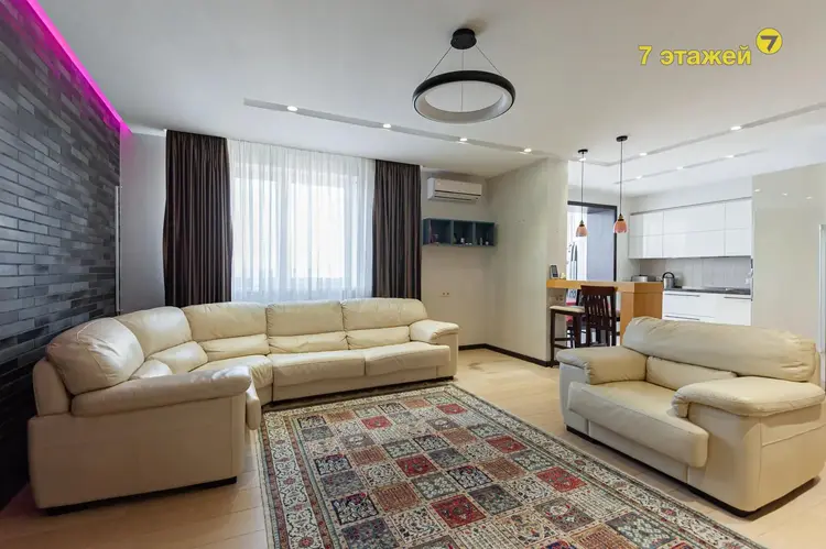 Стильная 5- комнатная квартира в современном доме и востребованном микрорайоне - Уручье!Современный каркасно-блочный дом повышенной комфортности!Хорошее месторасположение - в окружении соснового леса, вдали от проезжей части. Красивый панорамный вид из окон!Квартира имеет удобную планировку с хорошо освещенными комнатами, которая позволяет максимально эффективно использовать доступное пространство и подходит как для семейного проживания, так и для создания уютного личного пространства: кухня-гостиная и 4 изолированные комнаты, 2 санузла, высокие потолки - 2,79 метров!В отделке квартиры использованы качественные материалы. Напольное покрытие: ламинат, плитка.В оконных проемах установлены стеклопакеты с профилем ПВХ, в том числе на балконе и лоджиях.Встроенная кухня оборудована современной и высококачественной техникой: духовой шкаф, варочная панель, посудомоечная машина, вытяжка.В жилом пространстве два просторных санузла, облицованных плиткой современного дизайна, установлена необходимая мебель и сантехническая посуда (бойлер).Предусмотрены уютные локации как для досуга, так и для работы.Во всех помещениях детально продуманы системы освещения (встроенные и подвесные осветительные приборы) и хранения: вместительные шкафы-купе. В гостиной предусмотрен кондиционер.Установлены приборы учёта воды, домофон, оптоволоконная связь.Дом обслуживается товариществом собственников : чистый подъезд, доброжелательные соседи, функционируют 3 лифта, подключена система видеонаблюдения.Большая дворовая территория , окруженная хвойными деревьями, вместительная парковка со шлагбаумом.В квартале новый детский сад с бассейном и школа. В шаговой доступности магазины, супермаркет "Green", медицинские, торговые и бизнес-центры, объекты бытового обслуживания и сервиса, остановки общественного транспорта и все преимущества инфраструктуры микрорайона УручьеУдобное транспортное сообщение :10 минут до станции метро "Уручье" и проспекта Независимости, удобный выезд на МКАД.Экологически чистый район с артезианской водой и чистым сосновым воздухом, рядом лесной массив.Смотреть подробнее Свяжитесь с нами в viber или telegram