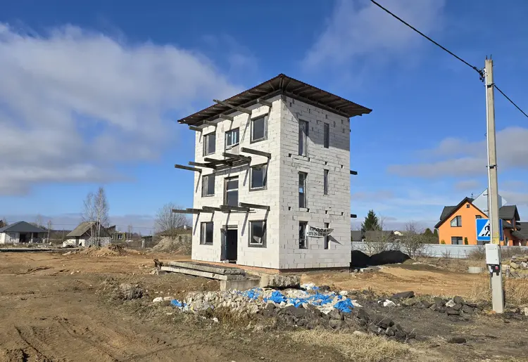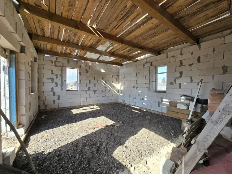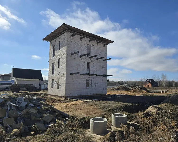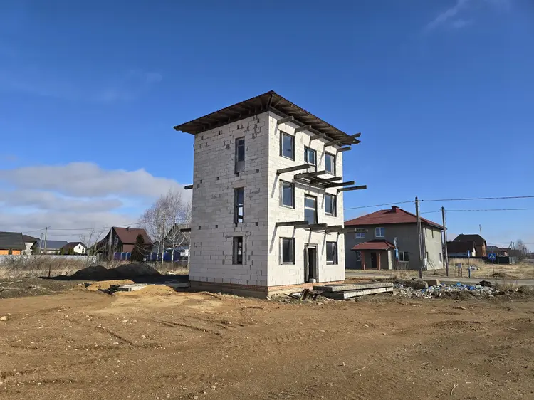 Незавершенное законсервированное строение в деревне Королево (26 км от МКАД), район коттеджной застройки по ул. Вишневая. Проектная документация согласована. Коробка из газосиликатных блоков, крыша из металло-черепицы, перекрытия-деревянные балки. Сделан фундамент под пристройку (5х12м) и под крыльцо (3х6м). Электричество 220/380в (рядом столб, счетчик установлен), вода и газ в 3 метрах от дома, канализация – 2 колодца по 3 кольца.