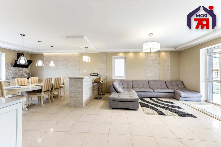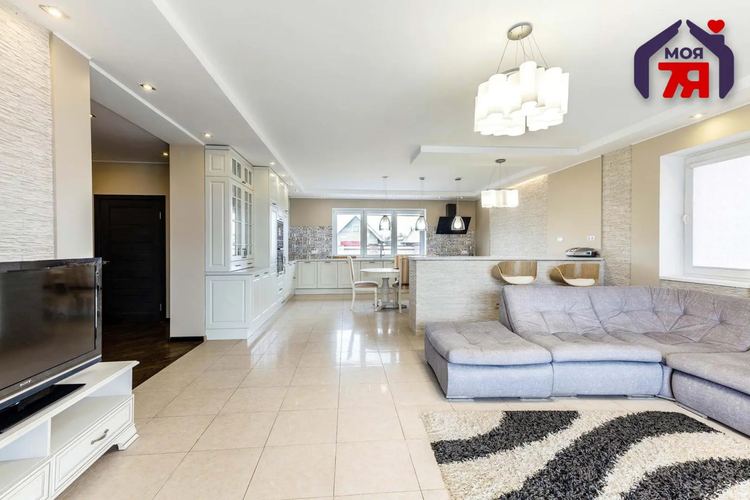 Пол итальянская плитка и паркетная доска , установлена система «теплый пол». Стильная современная отделка качественными материалами.. Встроенная кухня с бытовой техникой европейских производителей.