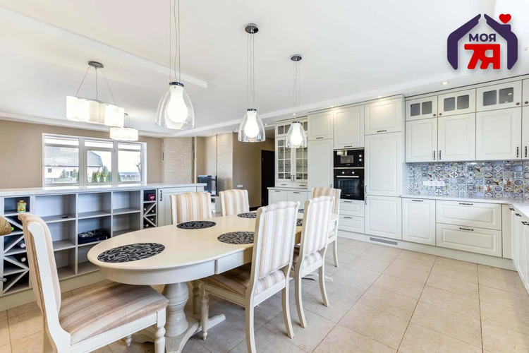 -Кухня с модульными фасадами из крашеного МДФ и кварцевой столешницей идеально сочетает эстетику и функциональность. Дорогая сантехника и напольное покрытие из итальянской плитки и паркетной доски делают дом еще более комфортным и долговечным.
