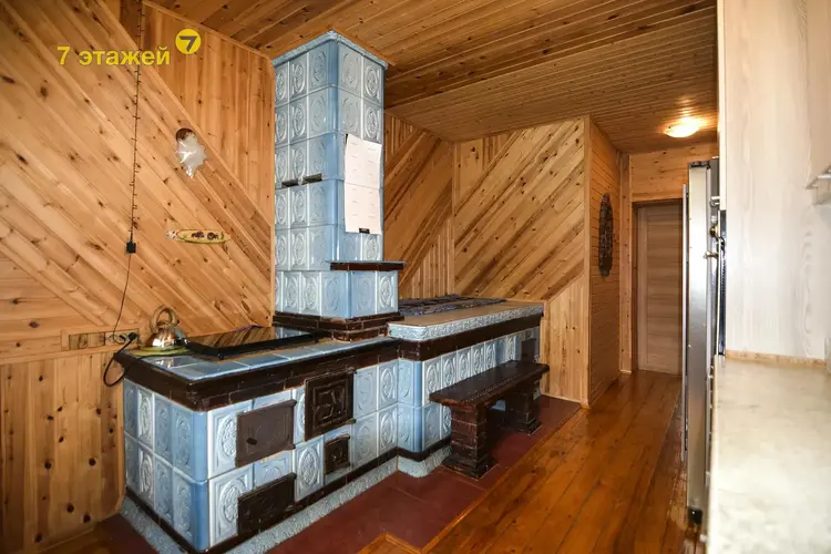 Кухня (площадь 12,3 м2) с работающей печью и уютной лежанкой — сердце дома, где можно не только готовить вкуснейшие блюда, но и наслаждаться теплом, отдыхая после долгого дня. Представьте себе аромат свежеиспеченного хлеба и уютные посиделки у огня!