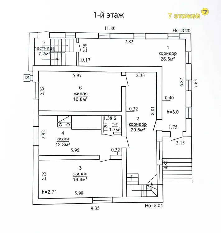 Три просторные комнаты, площадью 16,8 м2., где каждый член семьи найдет свой уголок для отдыха и уединения.