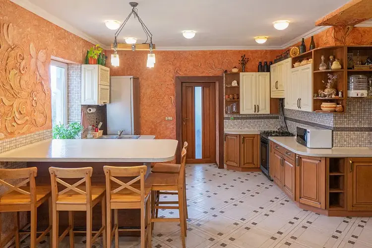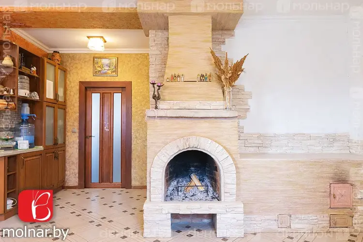 Просторная кухня 18 м/2 порадует камином в холодные зимние вечера. Также на первом этаже имеются две спальные комнаты по 14 м/2 и гостиная 16,7 м/2.