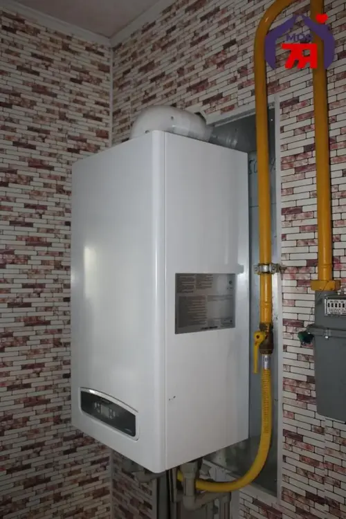 - В доме проведены все необходимые коммуникации. За отопление отвечает двухконтурный газовый котёл. В доме есть санузел.