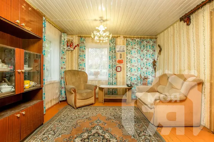 - Бревенчатый одноуровневый дом общей площадью 49,8 кв.м. Жилая площадь составляет 26,4 кв.м., кухня имеет 8,8 кв.м. Дом подходит как для постоянного проживания, так и для сезонного отдыха.