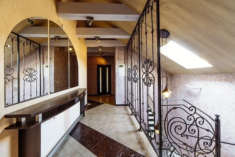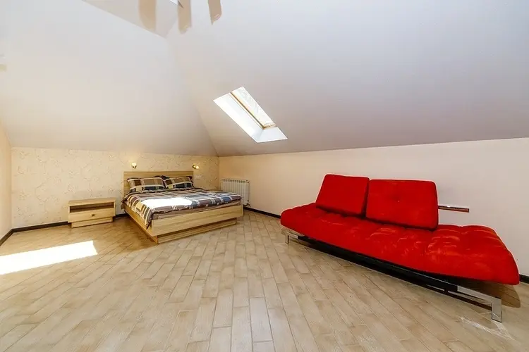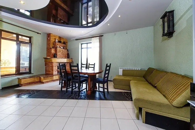 Также оборудован бильярдный зал с системой караоке и большим экраном, просторная гостиная комната с камином для незабываемых теплых вечеров в кругу семьи и финская сауна с бассейном. На территории усадьбы находится также гостевой дом с оборудованной русской баней на дровах, 2 комнатами отдыха, 2 санузлами, террасой, а еще беседка с зоной барбекю и дом охраны.