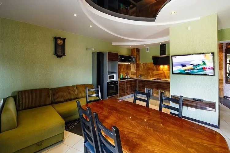Интерьер коттеджа оформлен в современном стиле с элементами стильной классики. Просторные комнаты, выполненные в пастельном цветовом решении, заполнены светом и комфортом. В доме пять спален для спокойного отдыха, которые оснащены отдельным санузлом и душем, кухня с необходимой бытовой техникой, где каждый сможет проявить свой кулинарный талант.