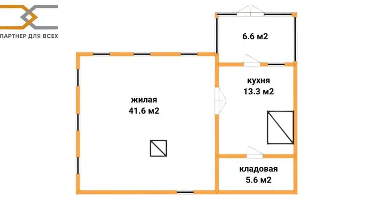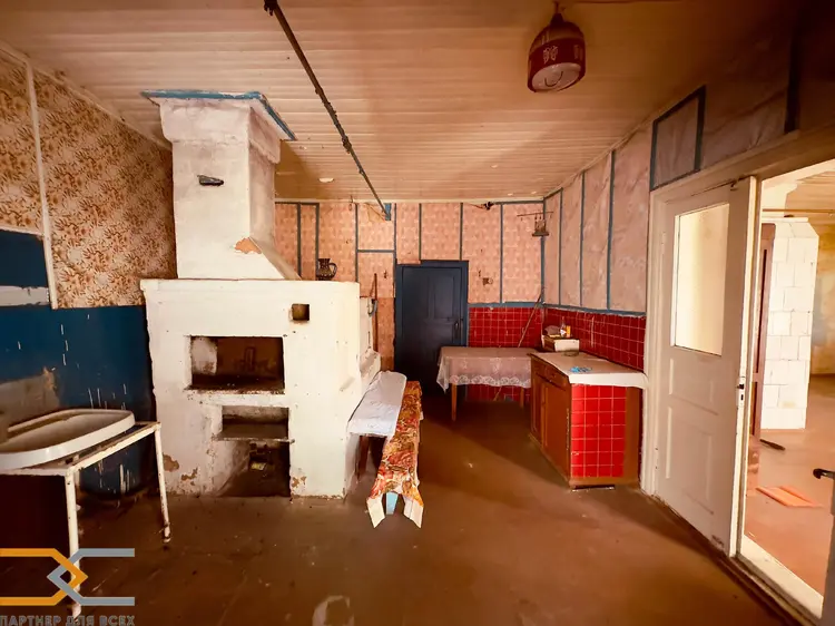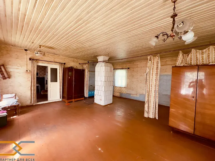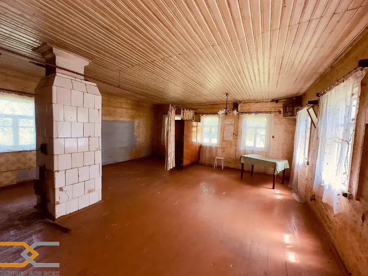 Общая площадь дома по СНБ 67,1 м2, состоит одной большой жилой комнаты 41,6 м2, кухни 13,3 м2, коридора, кладовой и летней веранды. Высота потолков 2,7 м.