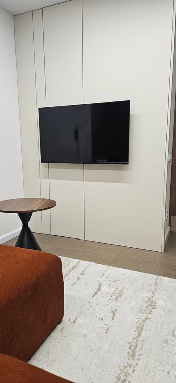 Кухня и вся мебель новые, техника встроенная (холодильник, плита).Много встроенных шкафов ,организация всего пространства.