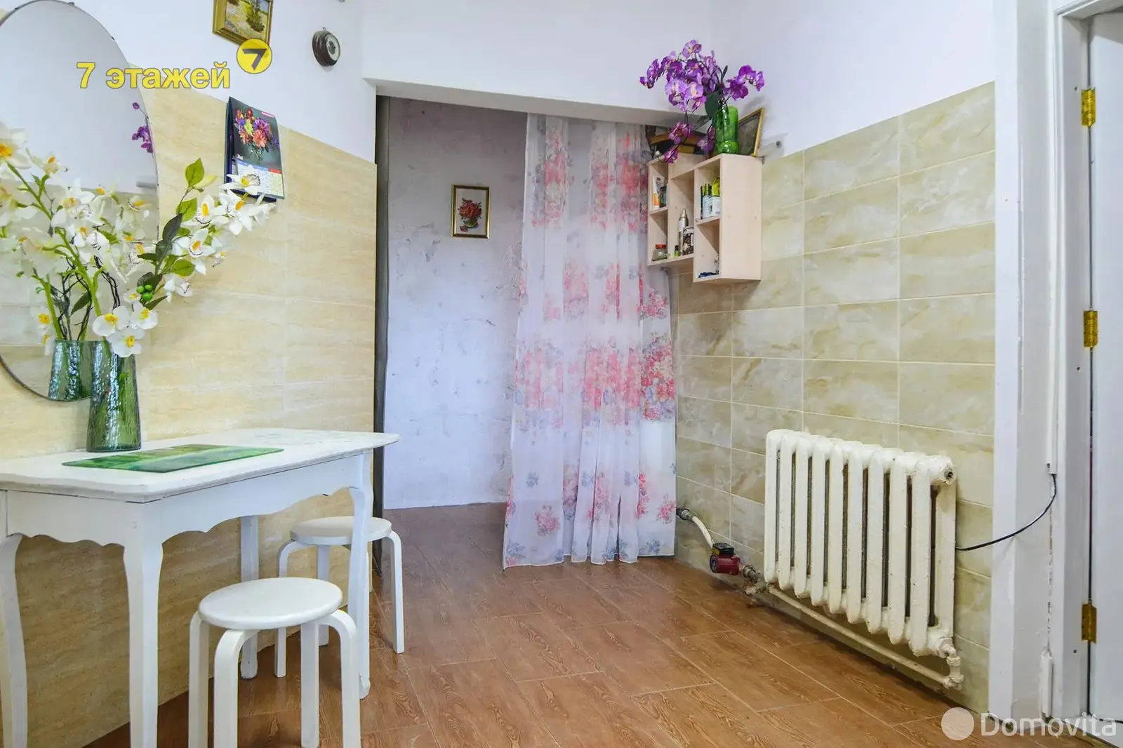 В коридоре и сан. узле на полу плитка, в комнате ламинат.