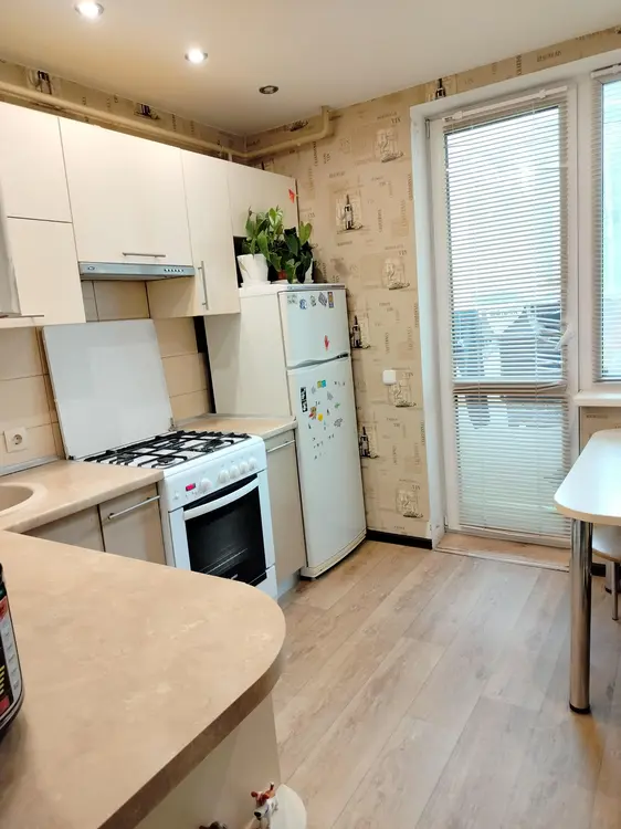 В квартире остается встроенная кухня, встроенный шкаф-купе.