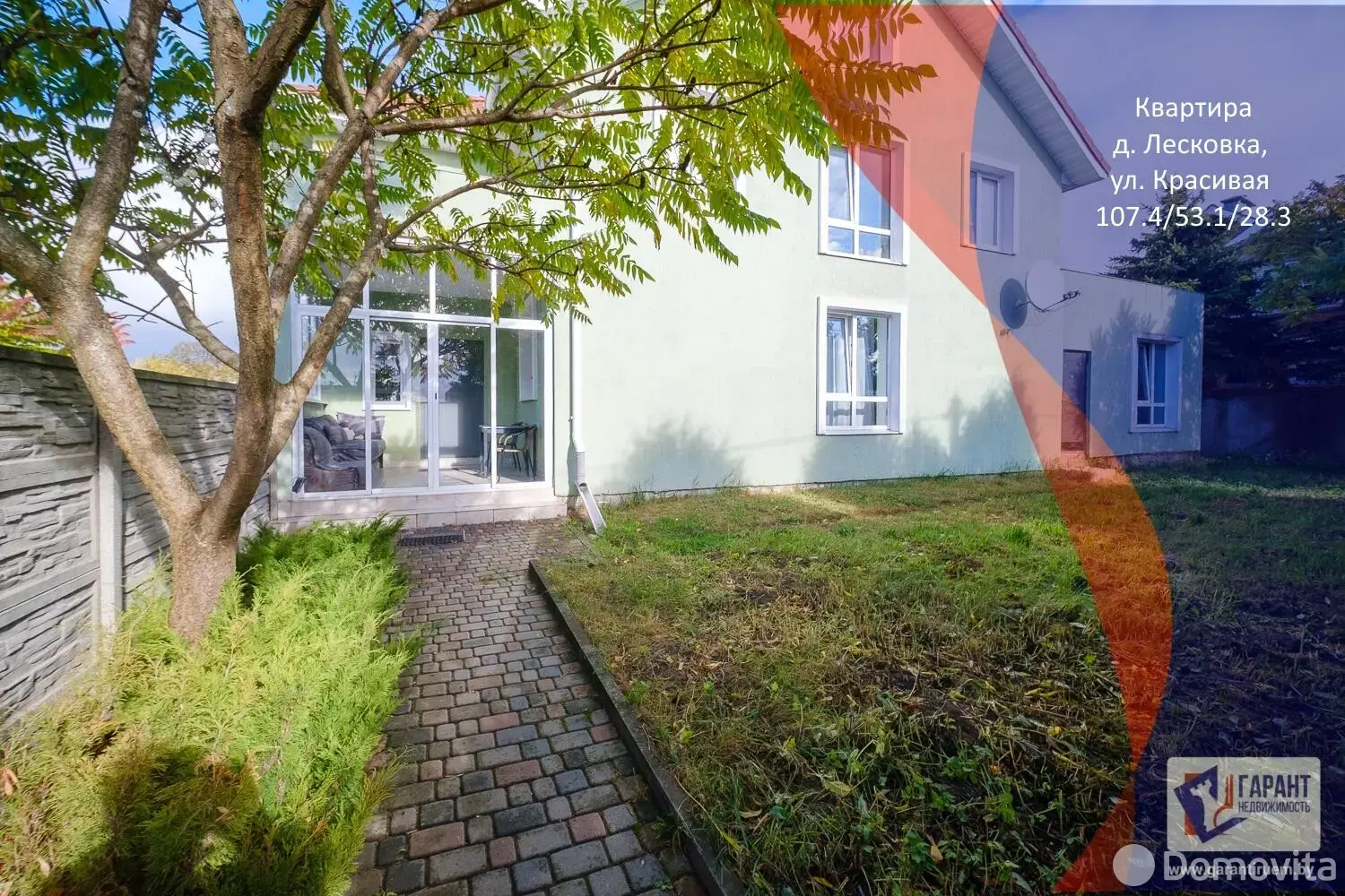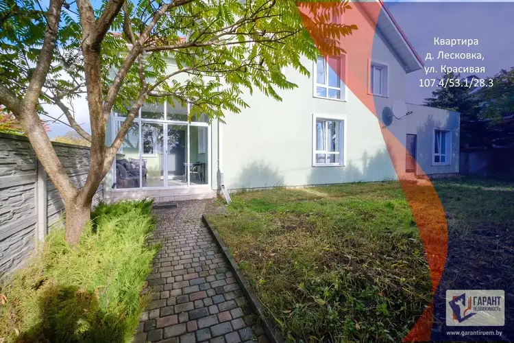 К квартире относится полностью огороженный земельный участок площадью 7,0 соток, на котором есть игровая зона для детей и можно организовать уютную зону барбекю. Сам дом обнесен качественным забором и расположен всего в 8 км. от Минска.