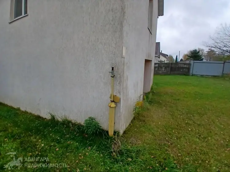 - Архитектура дома и коммуникации: первый уровень дома представляет собой гараж по всему периметру, стенами которого являются блоки ФБС, заглубленные на величину 1.5 метра, перекрытие над ним ЖБ плиты. Стены второго уровня выполнены из керамзитобетонных блоков. Под крышей находится мансардный этаж. Фасад здания утеплен ЭПП толщиной 100 мм, защищен декоративной штукатуркой «короед» и окрашен. На участке расположен колодец с погружным насосом и два септика канализации. Электричество разведено по дому, газ подведен непосредственно к зданию. Несмотря на то, что сама архитектура здания довольна проста, в нем нет устаревшего деления пространства, то есть можно под себя сделать планировку жилых комнат, а при желании, провести полную модернизацию строения с увеличением площади застройки.