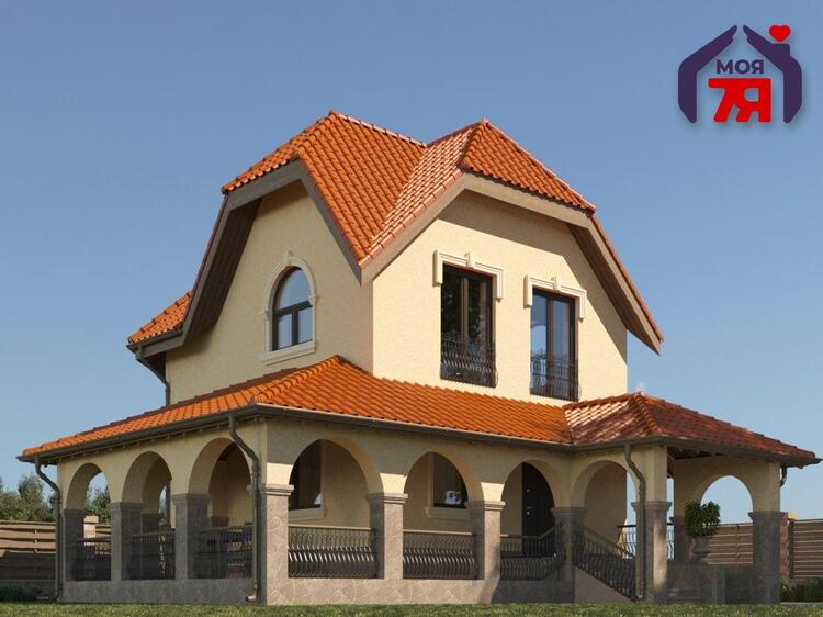 - Фасадный декор выполнен в итальянском стиле. Веранда, выходящая на южную и восточную часть, выполнена из монолитного бетона. Кровля на веранде - из керамической черепицы. Коттедж без внутренней отделки. Степень готовности - 80 %. Входных дверей нет, межкомнатных – нет, окна - 16 штук (пластиковые двухкамерные стеклопакеты с гранитными отливами).