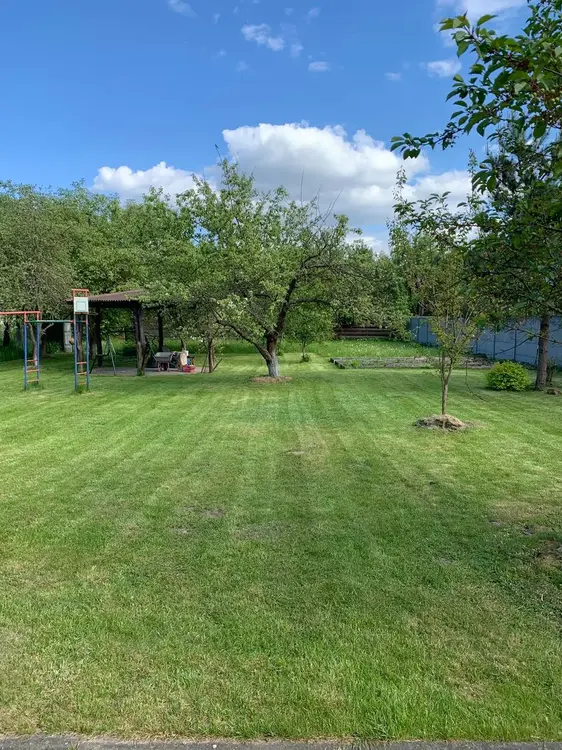 Отдельно построена баня (брус) с маленьким бассейном (4х8) и комнатой отдыха внутри. Так же отдельно построен навес для дров/инвентаря. По всему участку плодовые деревья- яблони, вишни, черешня, абрикосы, виноград и тд.