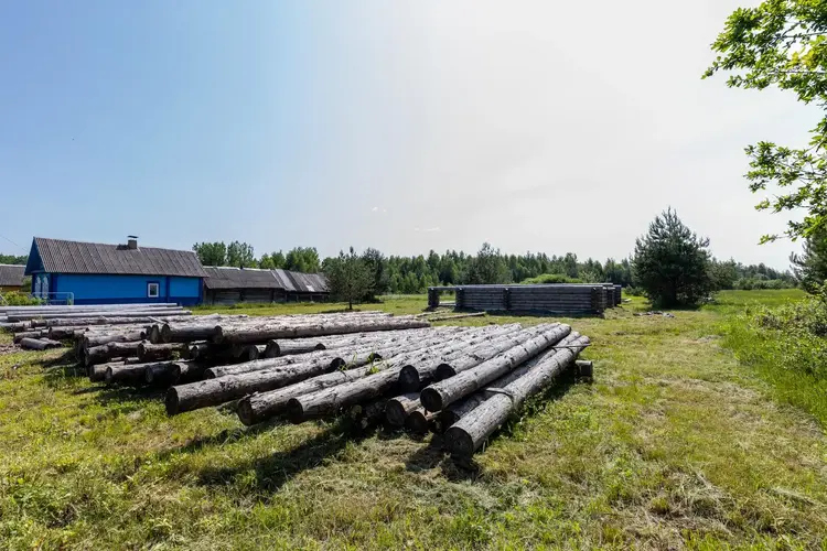На участке уже есть фундамент под баню и законсервированное незавершенное строительство дома площадью 90 квадратных метров из сруба.