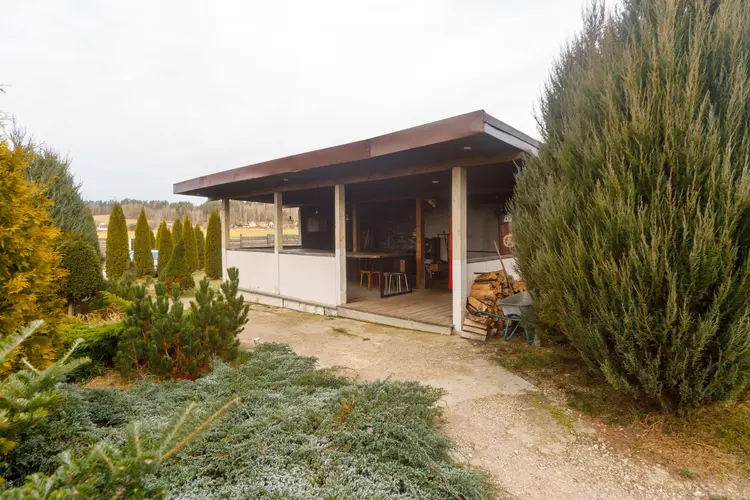 На участке также расположена большая оборудованная зона барбекю, газон, элементы ландшафтного дизайна, а также уложенная плиткой парковка на более чем 6 машиномест.