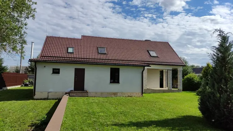 Дом выполнен из газосиликатных (40) блоков, оштукатурен и покрашен. Крыша из металлочерепицы. На крыше дома сделан молниеотвод (молниезащита) с контуром в землю. Общая площадь дома составила 202, м2. В дом введены все необходимые коммуникации: электричество (220/380В), водоснабжение (скважина), газовое отопление, местная канализация.