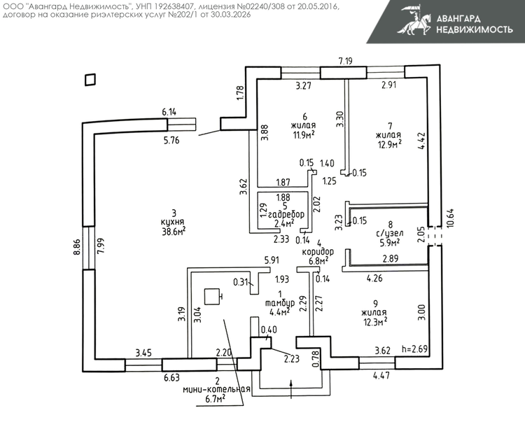 - Просторная кухня-гостиная 38.6 м2 с выходом на террасу.