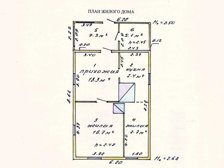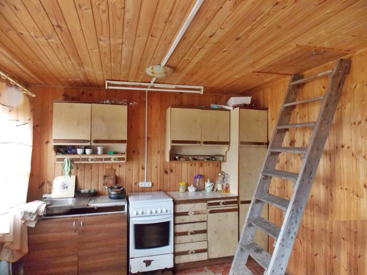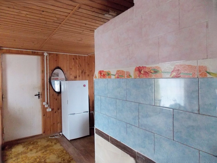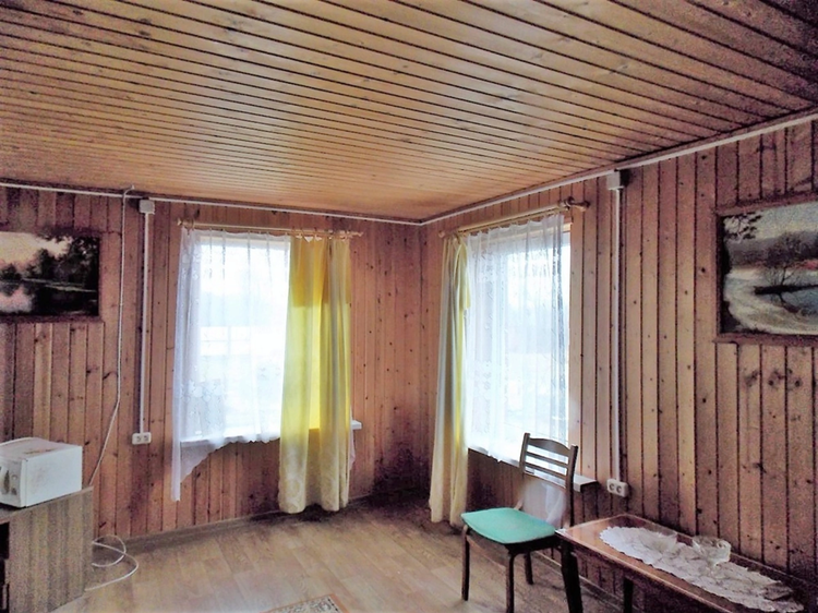 Добротный деревянный дом с шиферной крышей, общая площадь 57.5м2, жилая 37.7м2, кухня 7.4м2.