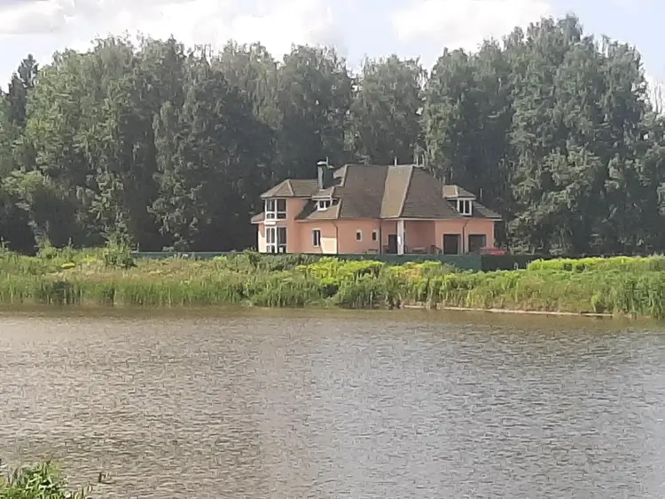 Рядом с участком расположено лесное озеро. На застройку и ландшафт материалы и растения привозились в том числе из Европы.