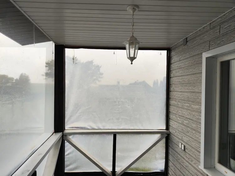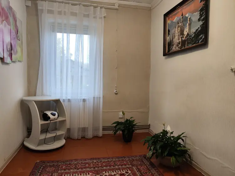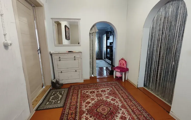 В прихожей и второй комнате пол доска, потолок декоративная доска, на стенах обои. В прихожей вход в подвал.