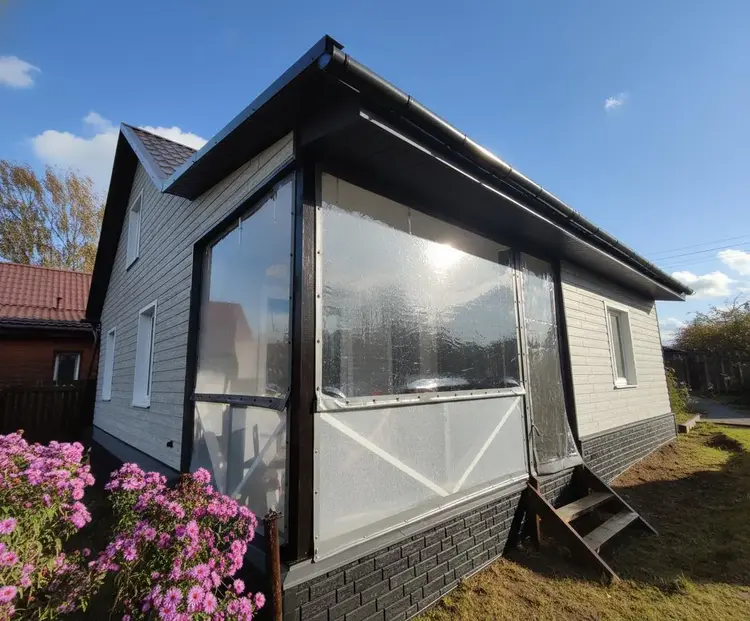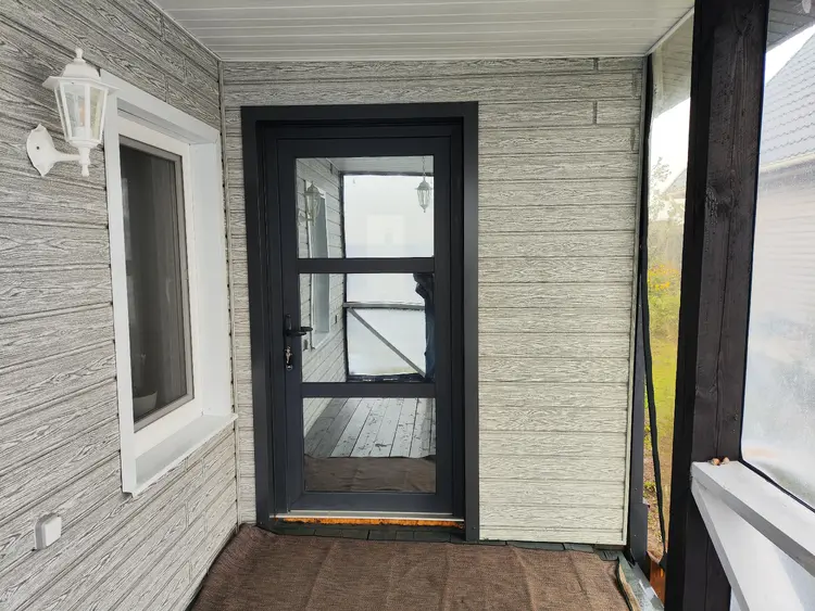 Дом из бруса, утеплен и обшит сайдингом. Крыша металлочерепица. Окна во всем доме-стеклопакеты ПВХ.