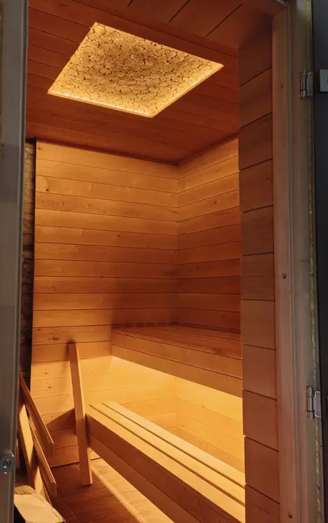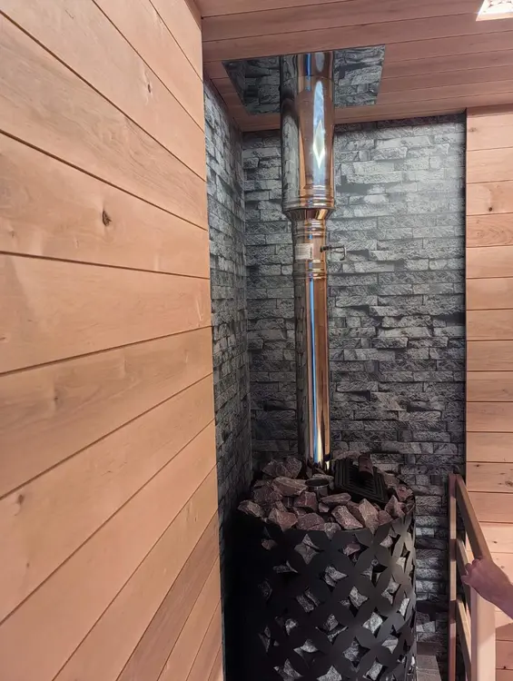 По коммуникациям всё есть, газ подведен к участку, электричество 380 В, можно заряжать электромобиль. В доме есть парная.