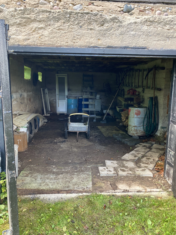 - Цокольный этаж по всему периметру дома с широкими гаражными воротами.