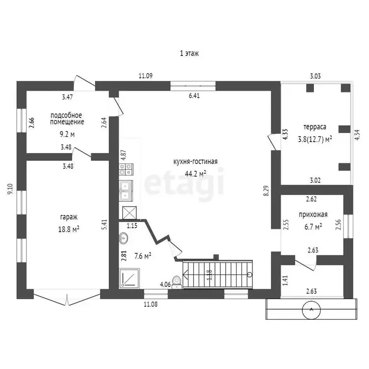 - большая кухня-гостиная (44.2 кв.м) с выходом на крытую террасу (12.7 кв.м), которые станут местом отдыха и встреч для всей семьи;