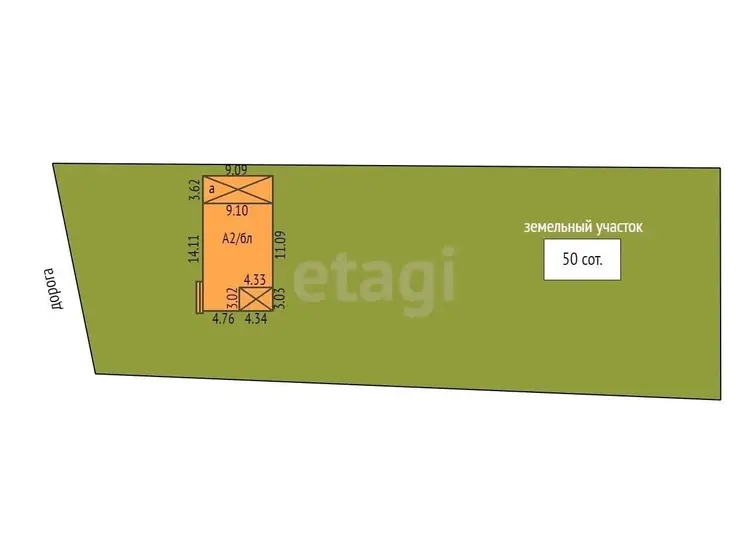 Участок 50 соток (25 соток для обслуживания жилого дома + 25 соток для ведения подсобного хозяйства) в частной собственности!
