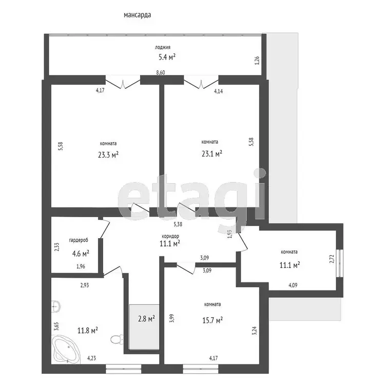 Мансардный этаж: три просторные жилые комнаты (из двух комнат выход на лоджию), санузел.