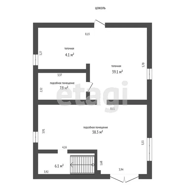 -- Цоколь – h 2.12m, 4 комнаты.