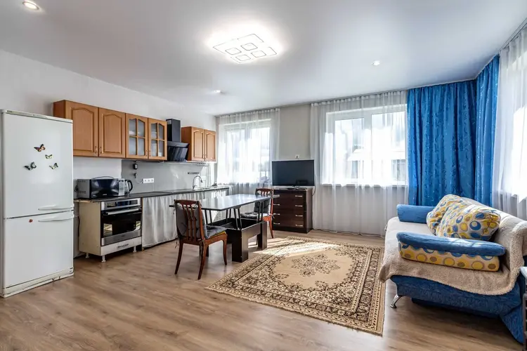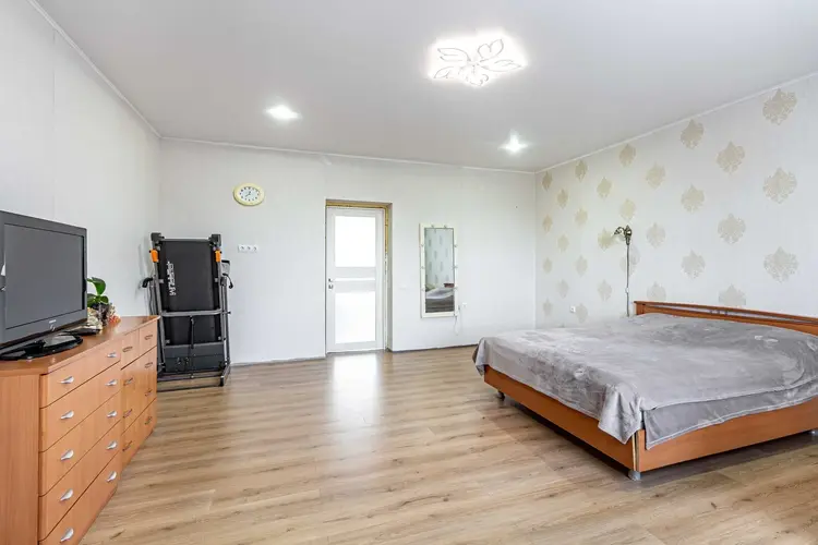 Первый этаж – 111,1кв.м., две просторные комнаты 23 и 28 кв.м., кухня-гостиная 28,8 кв.м., прихожая, санузел. Два входа.