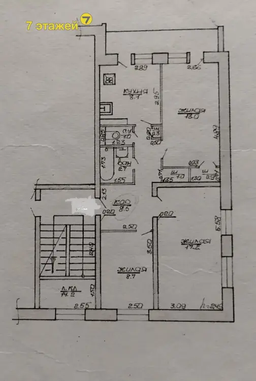 Метраж: 63,8м2 общая по СНБ, 61,4м2 общая, жилая – 38,9м2, Кухня — 8,1м2 c выходом на большую остекленную лоджию 2,49м2.